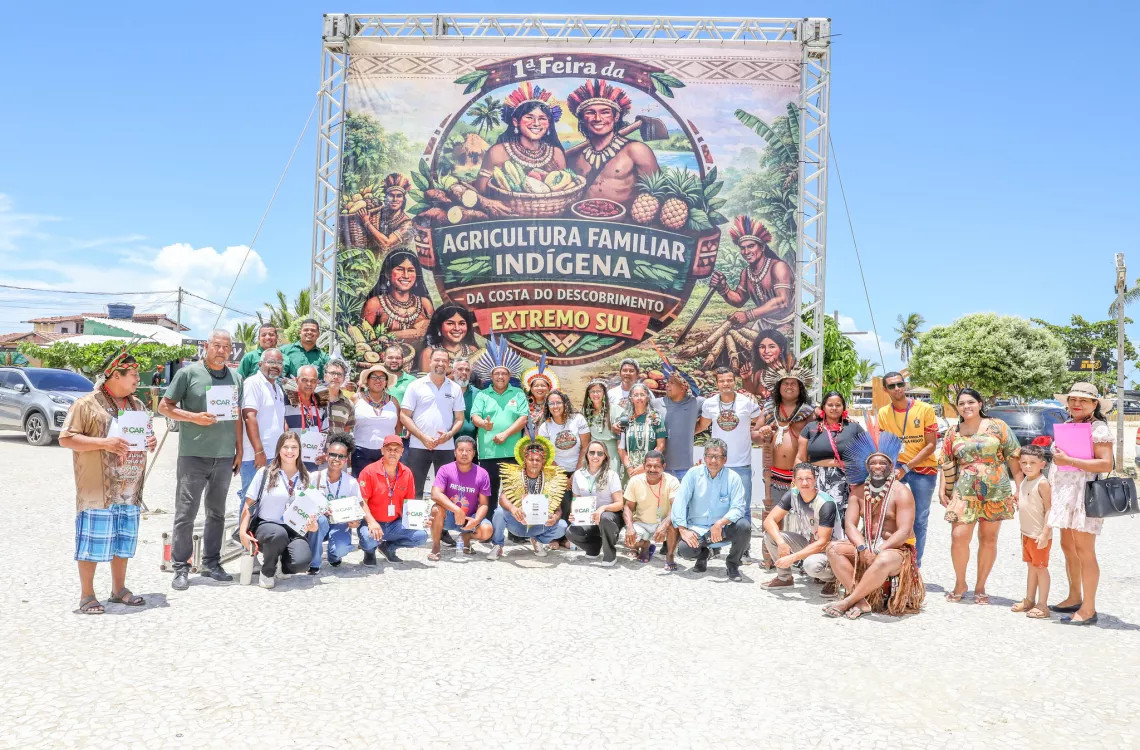 Foto dos expositores indígena que participou da primeira feira indígenas da agricultura familiar da bahia